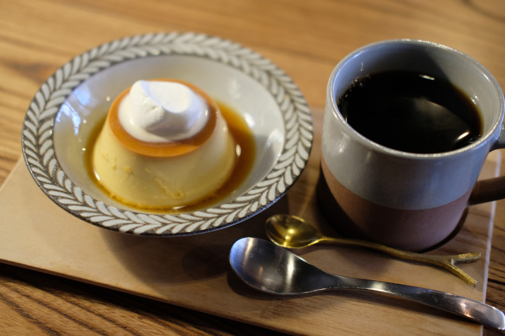 プリンは地元の養鶏場の卵を使っており、やさしい甘さと、少しかための食感が印象的。