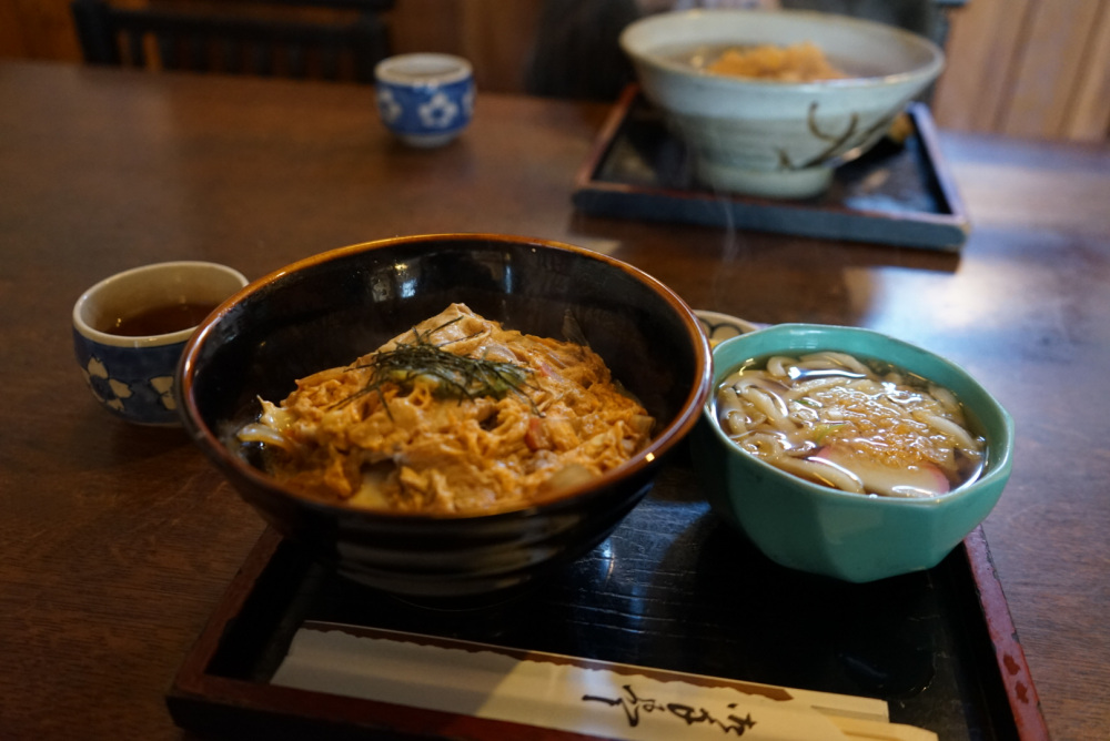 今回は、息子は天ぷらかけそば、私は親子丼とうどんのセットを注文しました。