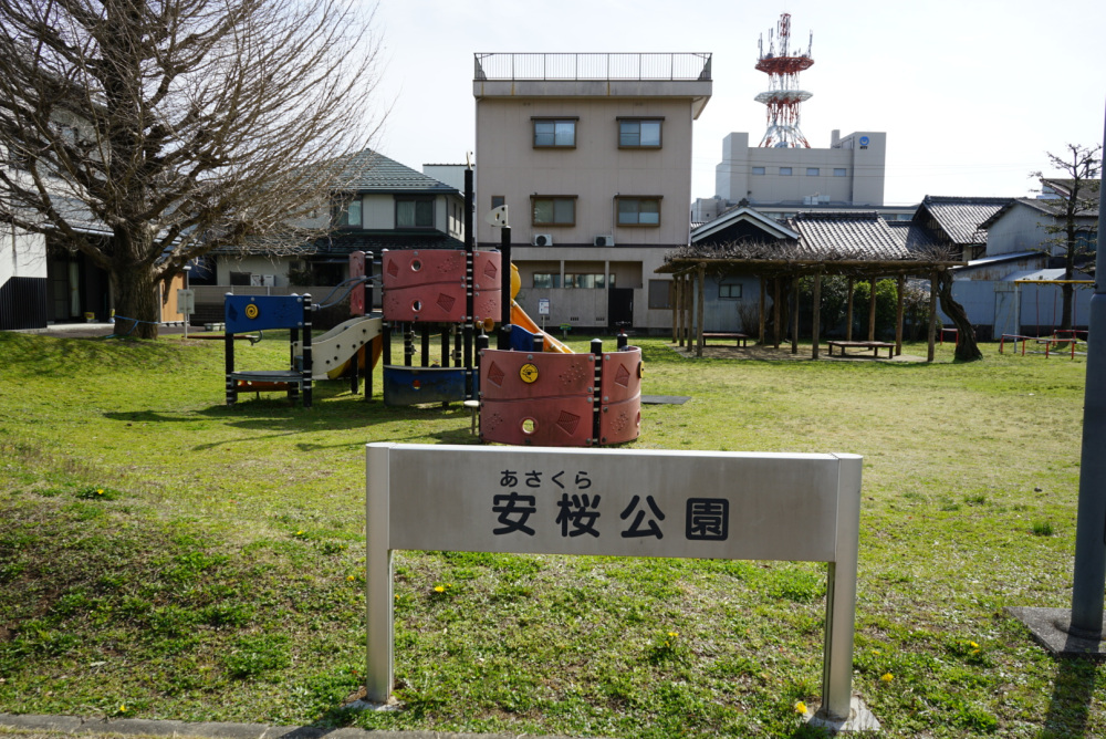 せきてらすに車を停めて、徒歩約5分の安桜公園へ。