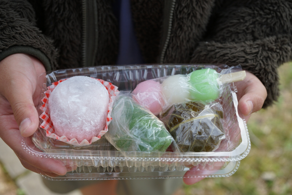 今回は草餅やいちご大福など、春らしいお菓子をお土産に購入しました。