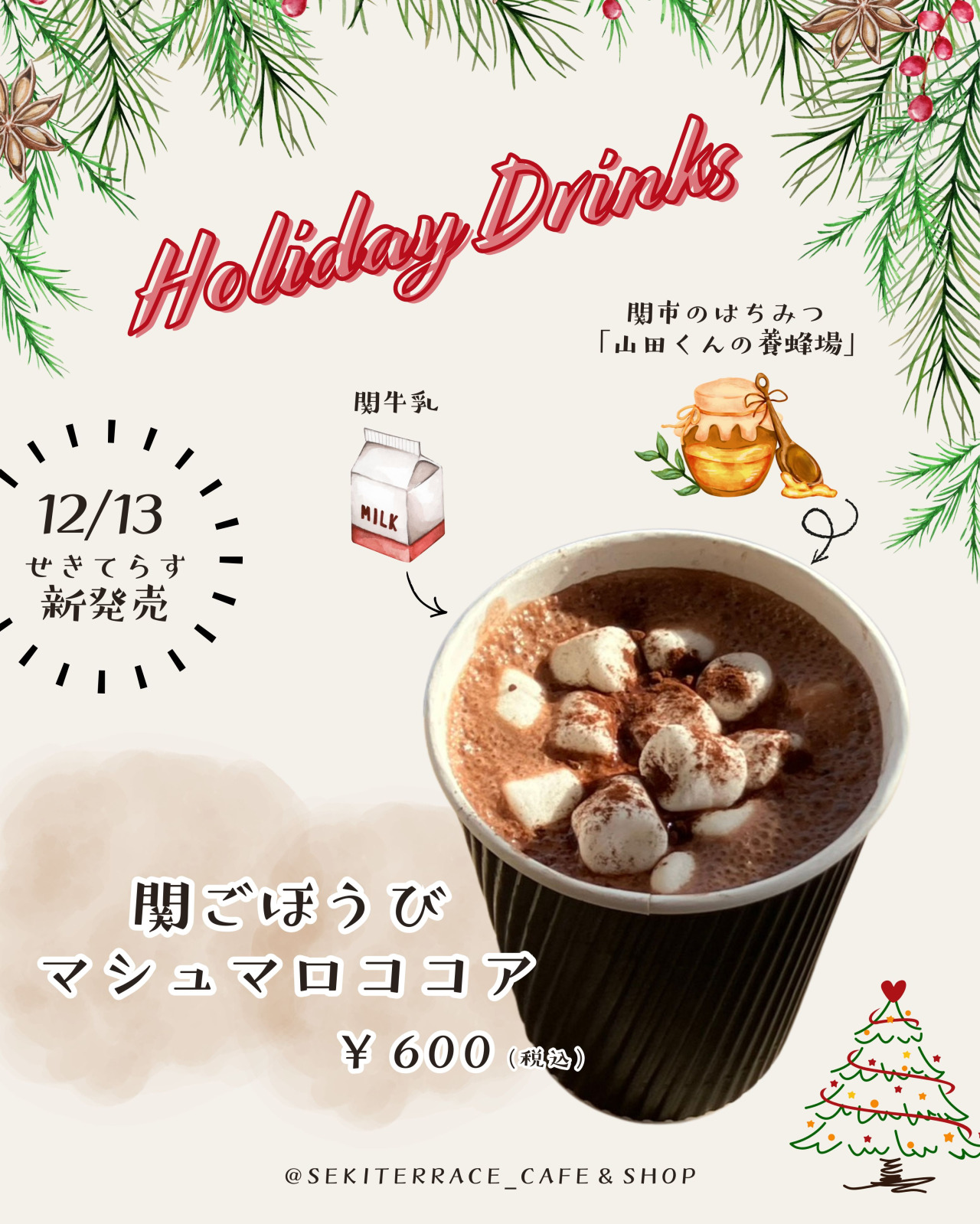 【せきてらすカフェ&ショップ】冬のせきてらすに、あったかごほうびドリンクが登場!