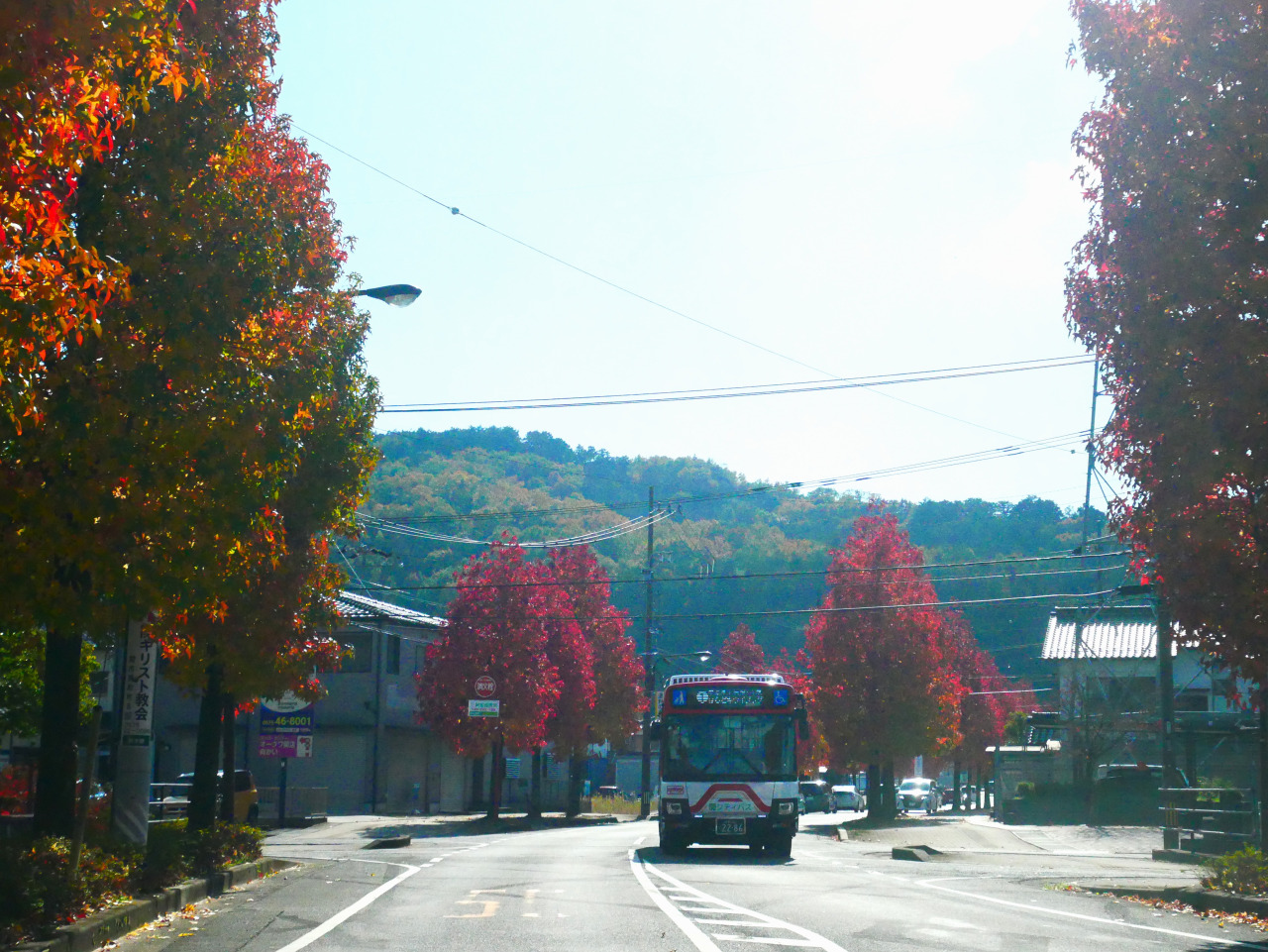 関市の「わかくさトンネル」から「関テクノハイランド」へ向かう道路沿いは、約3kmにわたってモミジバフウとトウカエデが植えられ、秋になると赤や黄に美しく色づきます。