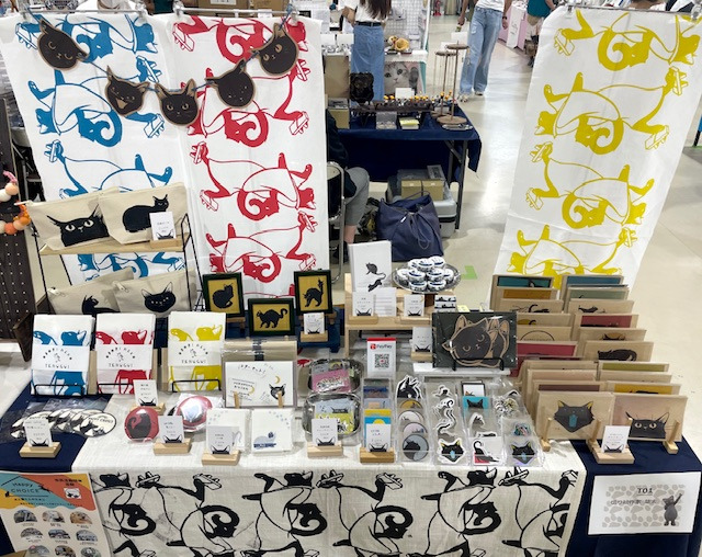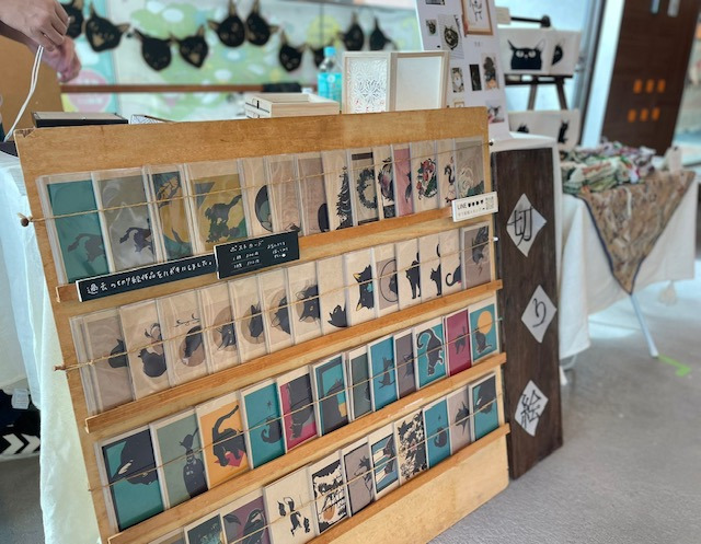 飼い猫をモチーフにした黒猫の切り絵作品は印象的で、多くの人の目を引いています。
