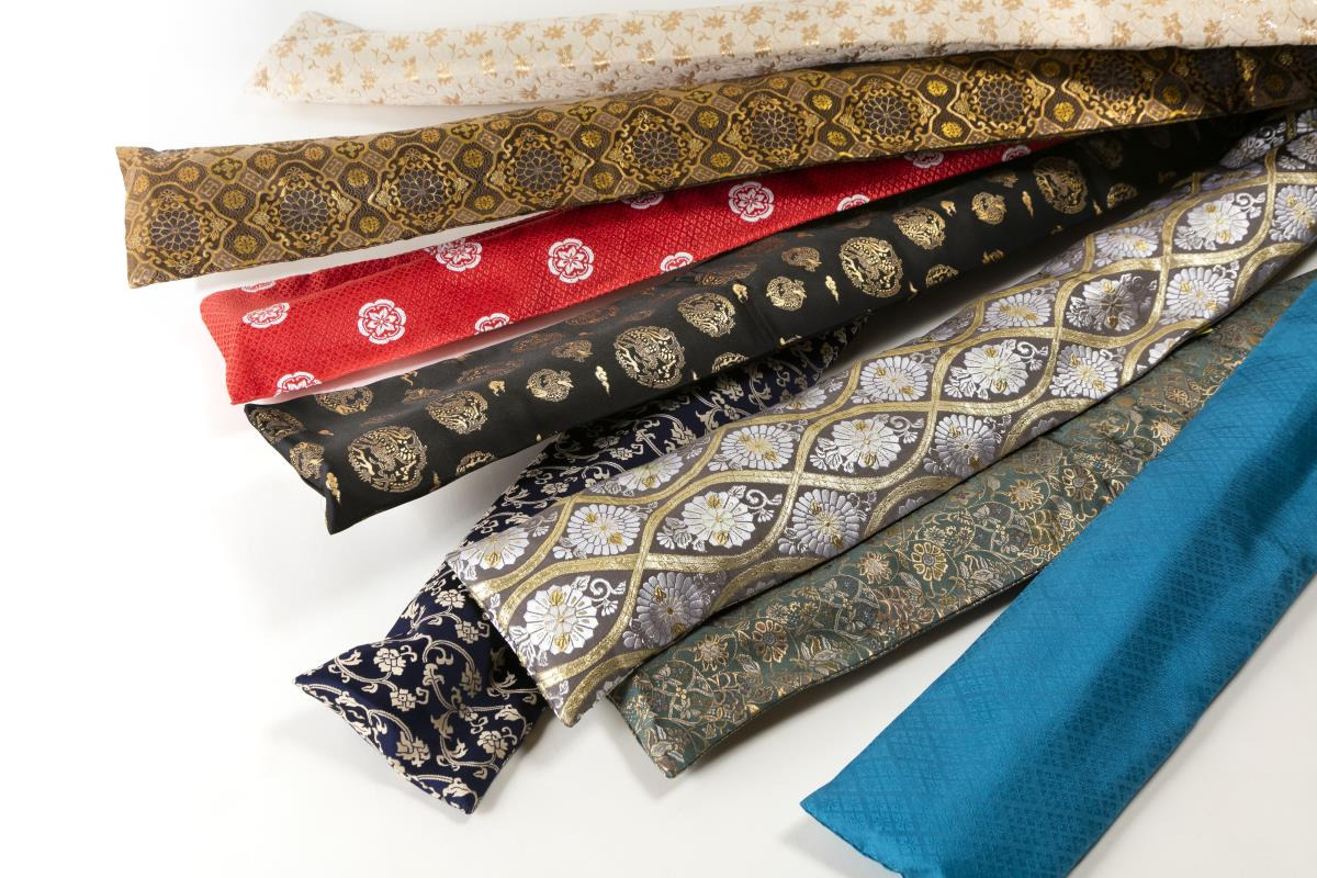 刀袋には、西陣織(金襴)や木綿の古布柄などを使用し、用途に合わせた丁寧な仕立てが特徴です。