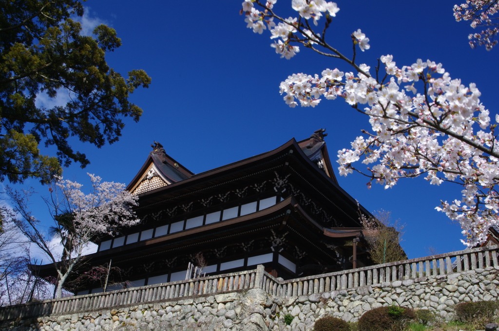 歴史ある本堂と桜が織りなす風景は、この時期ならではの趣。